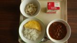 4月19日 今日の給食 今日の給食 2023.04.19 今日の給食の献立は、クロスロールパン、ハンバーグの新タマネギソース、アルファベットスープ、いちごゼリーポンチ、牛乳でした。ハンバーグの新タマネギソースは新タマネギの甘みがあふれるソースで、とてもおいしかったです。
