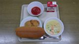 ご飯 肉じゃが ブロッコリーのあえもの 手作りひじき入りふりかけ ひとくちチーズ 牛乳
