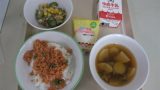 赤飯 とりにくの塩からあげ 菜の花のあえもの おいわい汁 牛乳