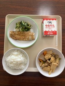ご飯 ちくぜんに さんまのかばやき こんぶあえ 牛乳