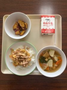 キムタクどんの具 ごもく汁 大学いも 牛乳