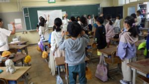 【3年生】運動会応援練習 3年生 2025.10.23 運動会に向けて応援団の5年生が応援の仕方を教えに来てくれました。 短い時間でしたが、応援の言葉や振り付けを覚え、大きな声で取り組めました。 本番でも大きな声で仲間を応援できるよう期待しています。
