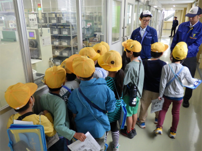 普段、生活している中でよく見る場所ですが、中々見ることのできない中身やたくさんの機械を目の当たりにし、目を輝かせておりました。