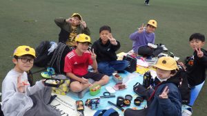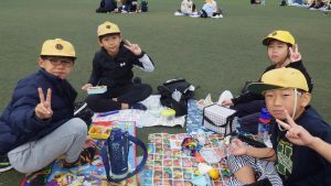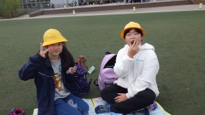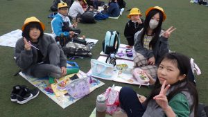 お昼は、芝生の上で気持ちいい風にあたりながらお弁当を食べました。