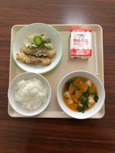 ご飯 ちくわのおこのみあげ かぶのこぶ茶あえ のっぺいじる 牛乳