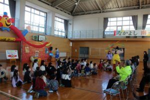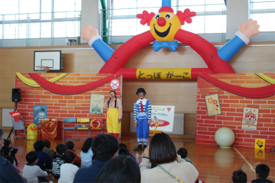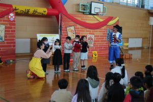 道化師の世界大会で金メダル受賞のクラウンコンビがいろいろなパフォーマンスを交えながら楽しくおもしろく交通安全について教えてくださいました。子どもだけでなく、大人も楽しめる会となりました。来年も実施予定ですので、まだの方はぜひ一度見ていただけたらと思います。