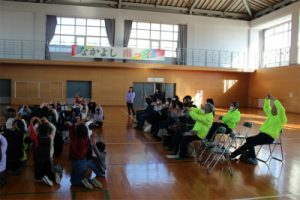 PTAだより11月26日(水)の2時間目に体育館で1年生児童を対象に交通安全教室を実施しました。今回は、保護者の方だけでなく、南コミュニティの皆様も多数出席してくださいました。