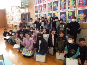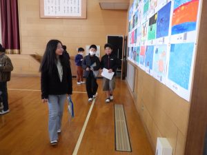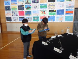 【4年生】学習成果展の鑑賞 4年生 2025.12.17 学習成果展にむけて一生懸命作品を作りあげて、無事に展示することができました。 また、他の学年の作品も見て、良いところや素敵なところをたくさん見つけて、鑑賞を楽しむことができました。