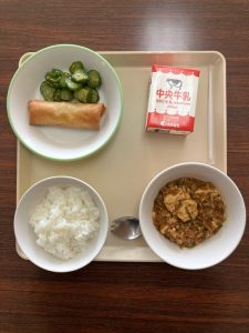 ご飯 マーボーどうふ はるまき きゅうりのかおりづけ 牛乳