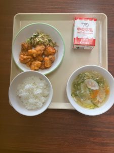 ご飯 ヤンニョムチキン もやしのナムル はるさめスープ 牛乳
