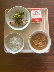今日の「みそ豆乳ちゃんぽんスープは今年度の津島市給食献立コンテストで市内の中学生が考えたメニューです。寒い時期にみんなが健康においしく食べられるように願いをこめて考えたようです。とてもおいしかったですよね。