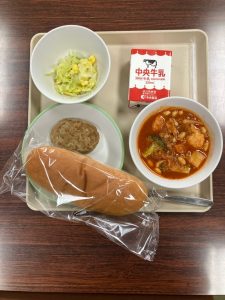 今週は全国学校給食週間で、愛知県の郷土料理を中心に献立が考えられています。今日の「あいちのやさいのトマトに」でも、愛知県で採れた野菜をいっぱい使っておいしく味付けされていました。愛知県は工業がさかんで有名ですが、実は野菜の収穫も全国で高い県なんですよ。