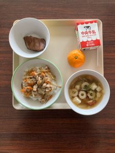 ご飯 かきましの具 ぶりのてりやき はちはい汁 みかん 牛乳