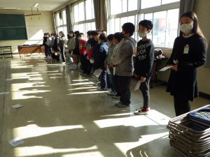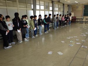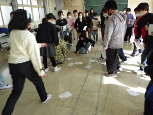 名古屋城やジブリパークなどの有名な場所について書いていたり、きしめんや自動車などの有名な物について書いたりと、思い思いに作ったカルタで、松組竹組一緒にカルタ大会をす行いました。