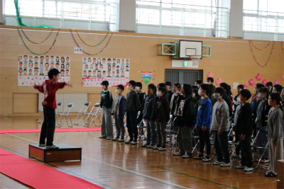 6年生から学校のリーダーとしてのバトンを受け継ぐ引継ぎ式。5年生はこれまで練習を重ねてきた『はなむけの言葉』と『合唱(大切なもの)』を披露しました。本番では、ソプラノとアルトの美しいハーモニーが体育館に響き渡り、6年生への感謝と「これからは自分たちがこの学校を支えていく」という強い決意が伝わる、素晴らしい歌声でした。
