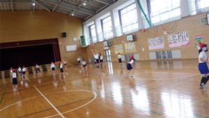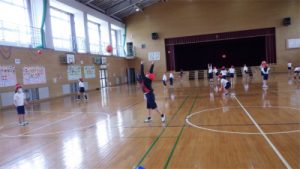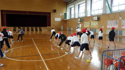 初回の体育の授業では松・竹ともに学級全体で楽しく身体を動かすことができました。