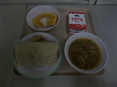 給食の主食として出されている麵は、ソフト麺、白玉うどん、中華麺、きしめんの四種類です。おかずとしては、焼きそばやスパゲッティなどがあります。色々な麺を味わってください。